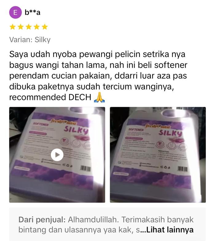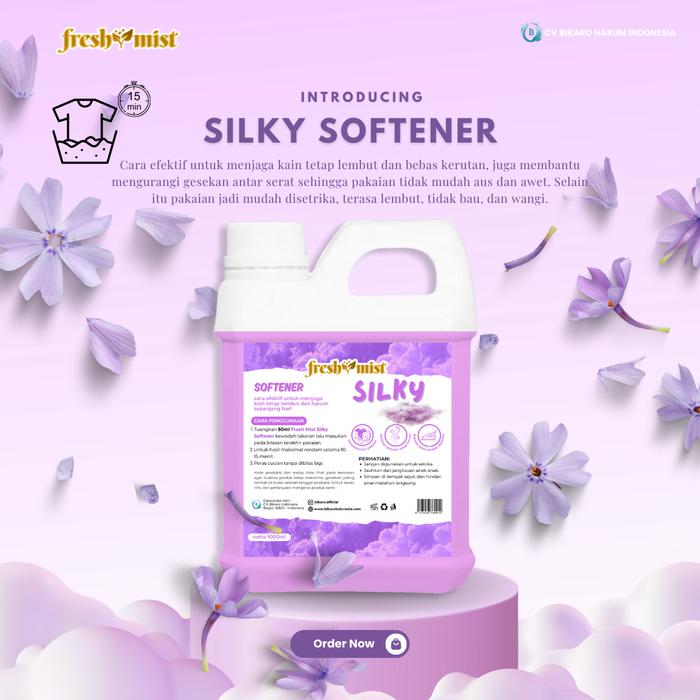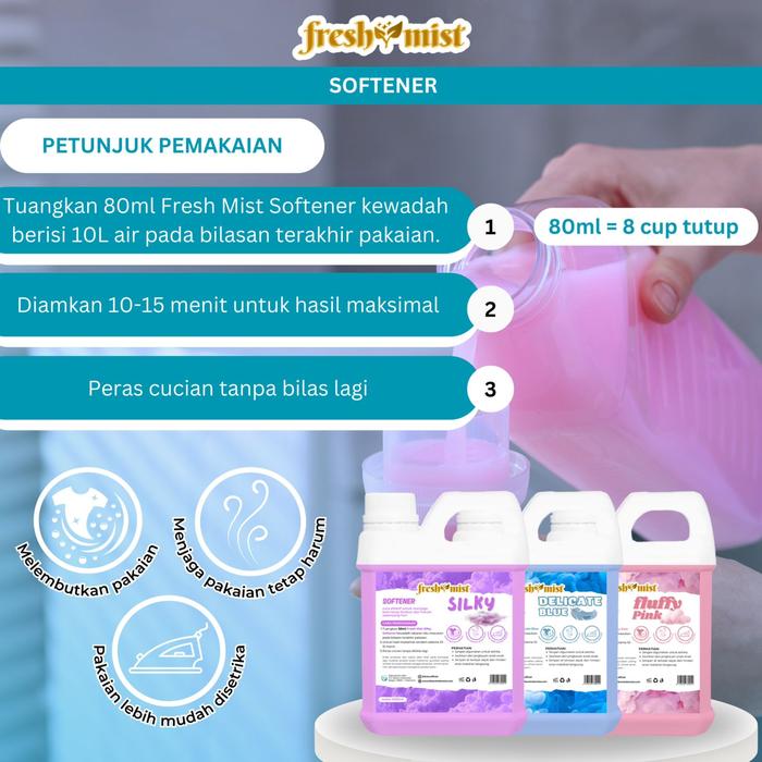 Softener Silky Best Seller FreshMist Ukuran 1 Liter Cairan - Prendam & Pewangi Cuci Pakaian - Silky Softener