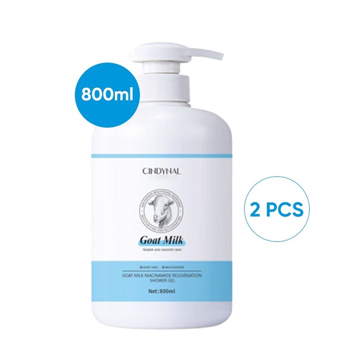 [2PCS] CINDYNAL Refill Goat Milk Body Wash Niacinamide Moisturizing Brightening Smooth Skin / Sabun Cair Susu Kambing Is