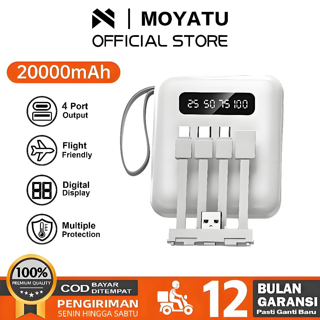 MOYATU POWERBANK 20000 MAH MINI SIZE WITH 4 KABEL 2.1A FAST CHARGING LED SENTER DISPLAY