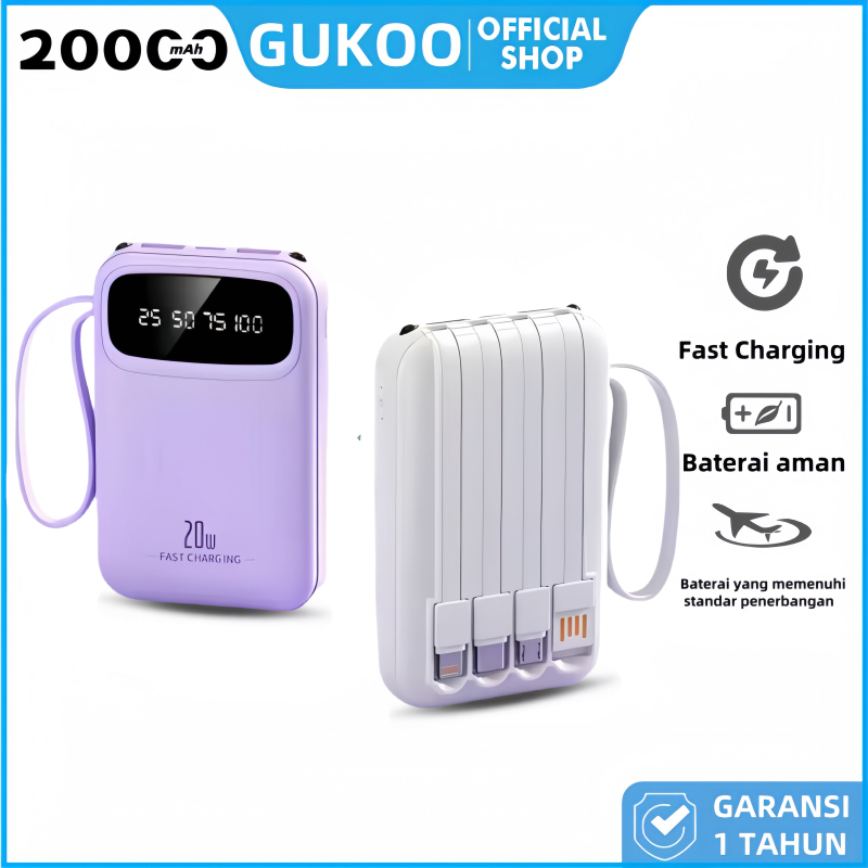 Gukoo Power Bank 20000mAh Fast Charging, 4 Kabel USB Included - Bisa untuk Semua Gadget