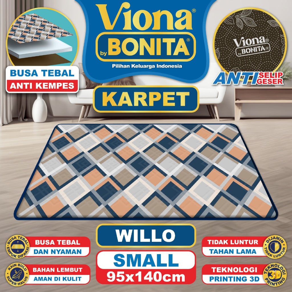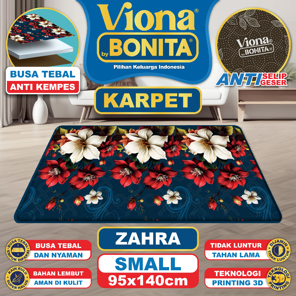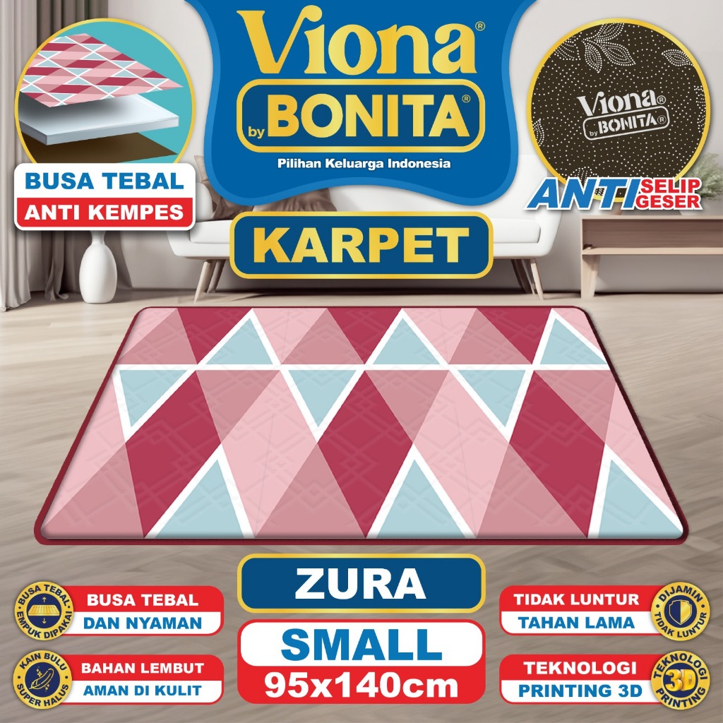 Karpet Busa Bonita Viona Ukuran 95x140 Bahan Lembut & Tidak Luntur ANTI Slip / Busa Tebal