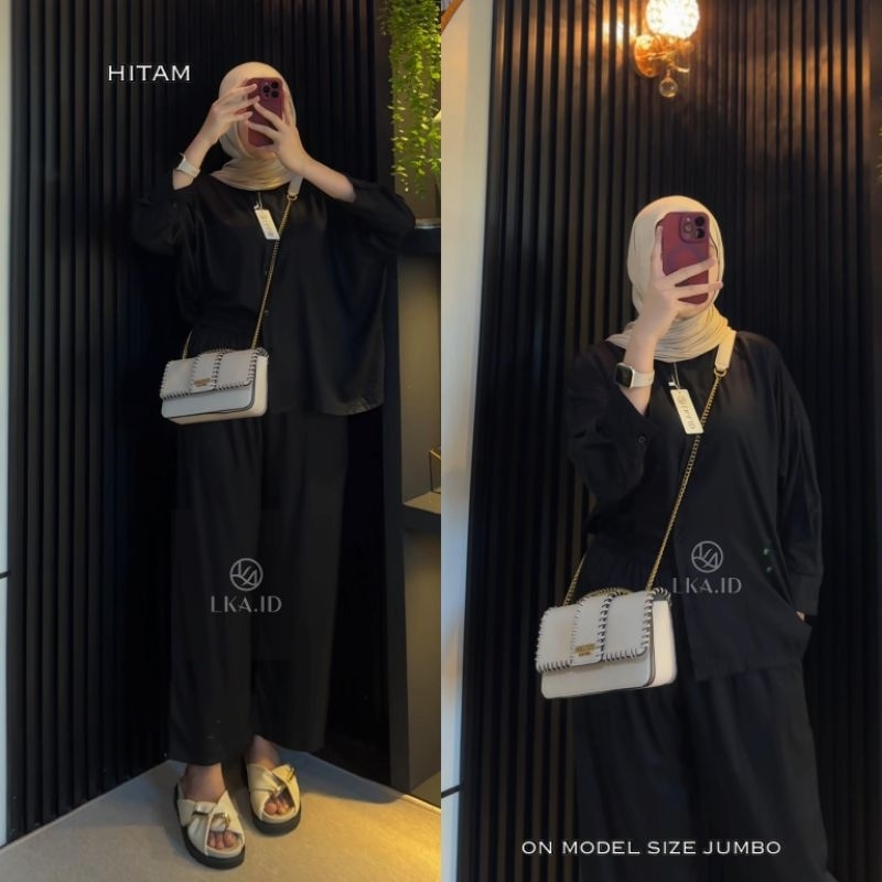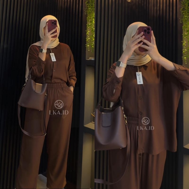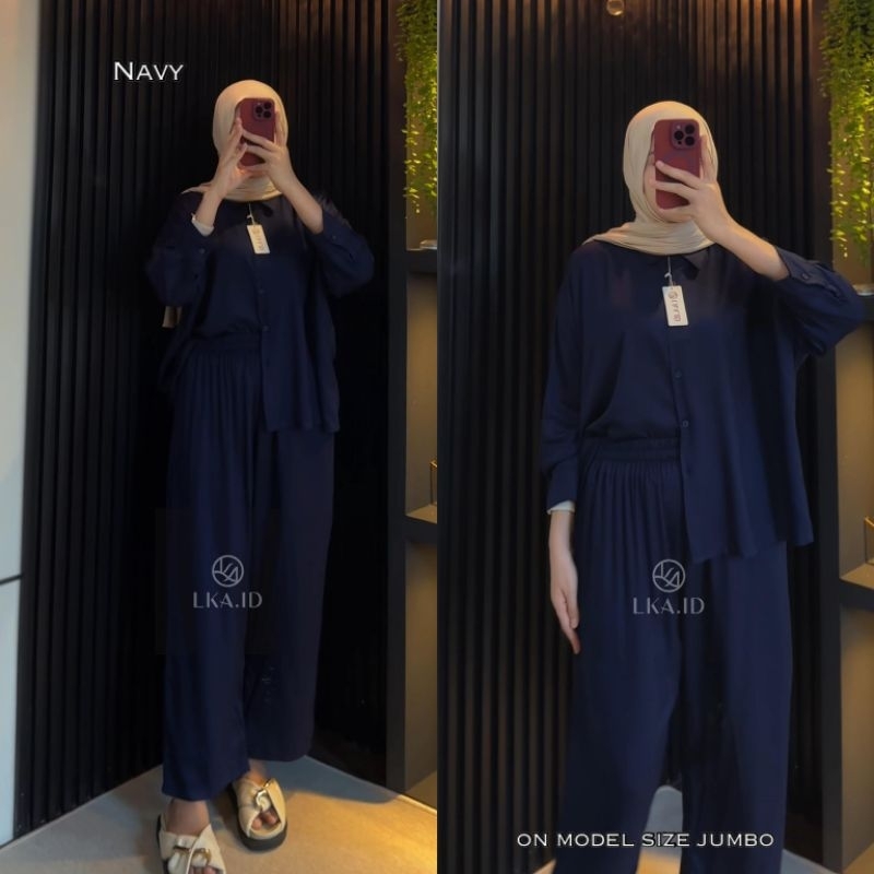 LKA One Set Polos Oversize Rayon Twill Premiun Setelan Kemeja Kulot Wanita Kekinian