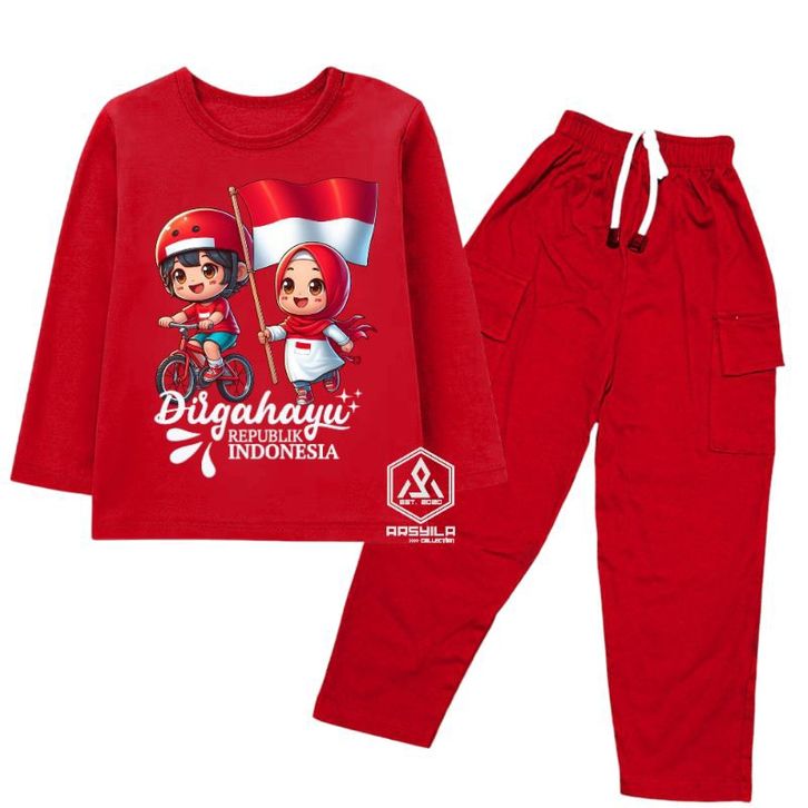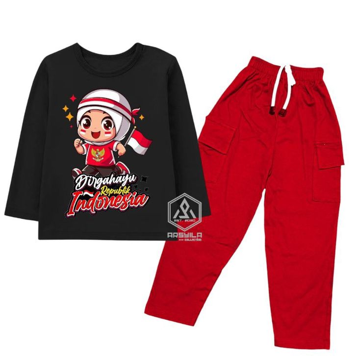 Setelan Anak Kemerdekaan Lengan Panjang Celana Panjang Usia 1-11 tahun - Baju 17 Agustus Anak Perempuan Lengan Panjang