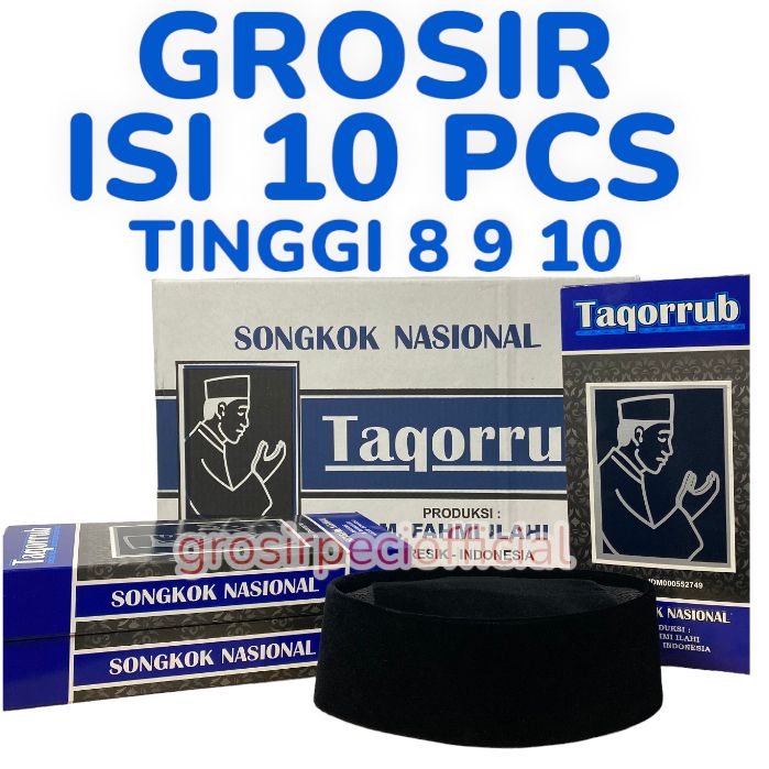 RK - GROSIR Isi 10 Pcs Peci Songkok Taqorrub AC Peci Santri Hitam Polos Kodian Murah Harga9rosir