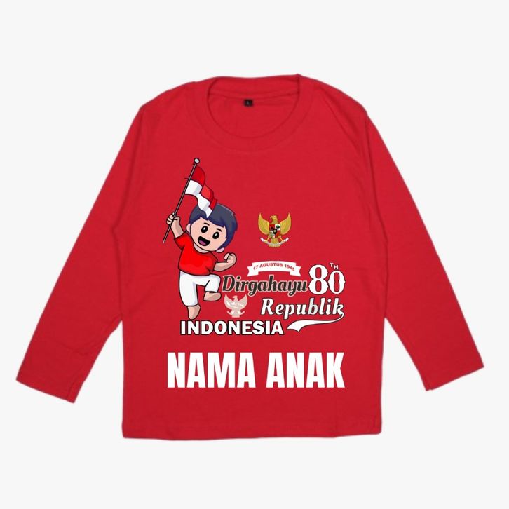 GRATIS NAMA ANAKBAJU KAOS DISTRO ANAK DAN DEWASA CWO DAN CWE M0DEL LENGAN PANJANG 17 AGUSTUS MERAH PUTIH 1945