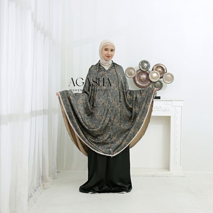 RK - Mukena Myesha Resleting 2in1 Armani Silk Motif Bunga Renda Premium
