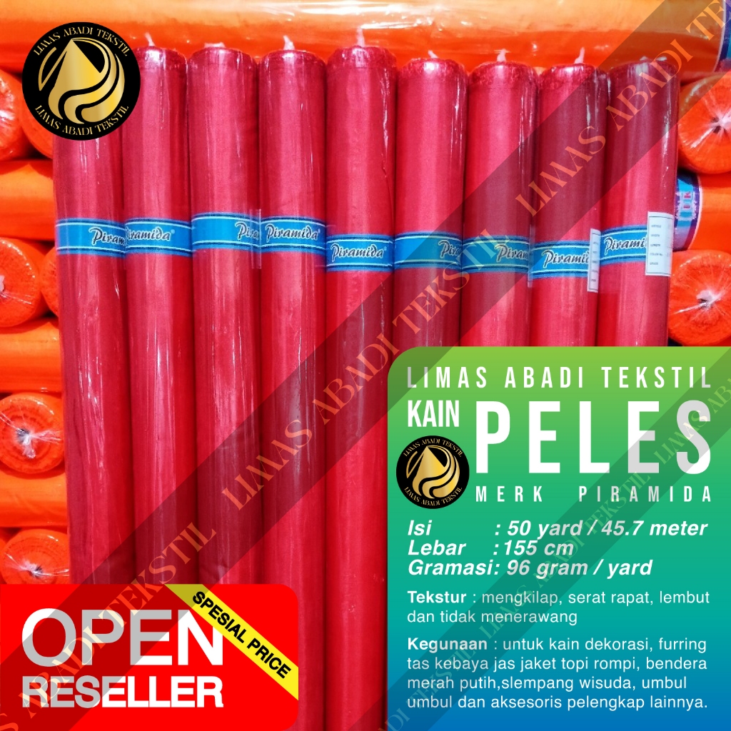 Kain Satin Polos Peles Veles PIRAMIDA(Warna Merah Bendera) furing serbaguna,kain bendera 17-an,umbul