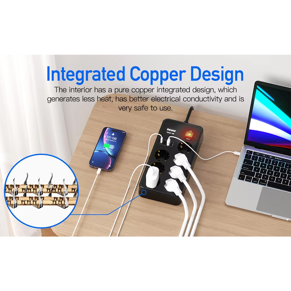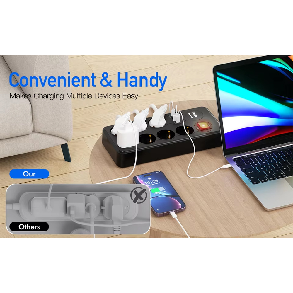 ROVU Stop Kontak 7 Lubang USB Type C EU Plug 10A 250V 2500W - BKL-E8 - Black