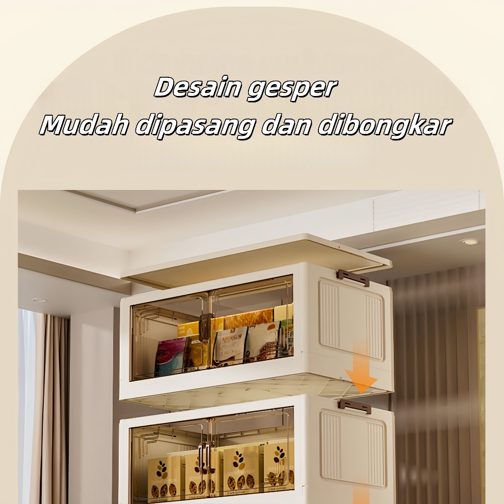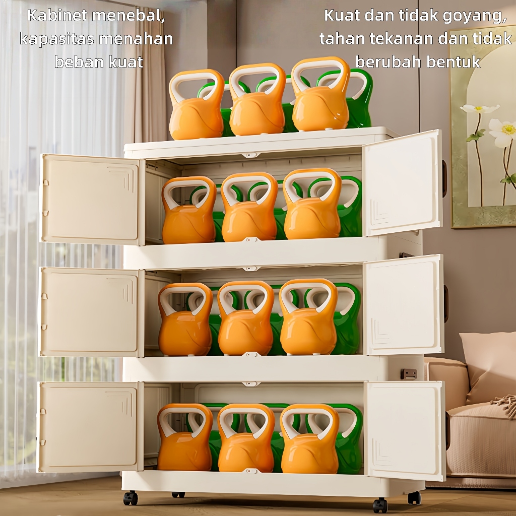 Lemari Plastik Lemari Plastik Lipat Penyimpanan Serbaguna Lemari beroda itu sederhana dan bergaya