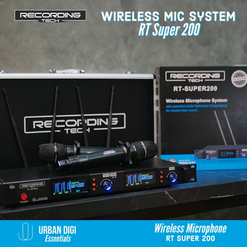 Recording Tech RT Super 200 Black/Silver - Wireless Microphone System Professinal Vocal Dual Mic untuk Acara Karaoke Masjid Event Akustik Kafe Gereja Musik