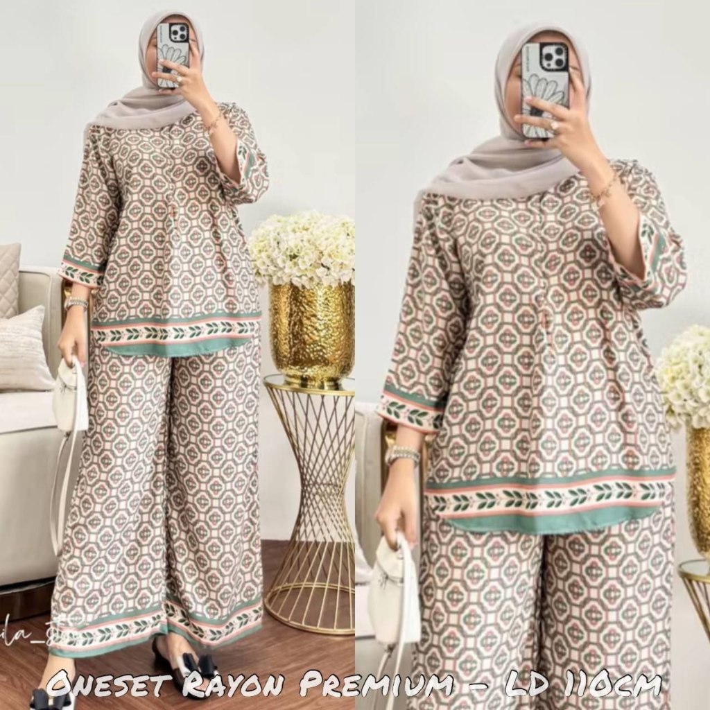 Tania Setelan Terbaru Kekinian JUMBO Setelan Celana Kulot Panjang Lengan 7/8 Rayon Motif Premium Baju Dewasa Wanita Adem