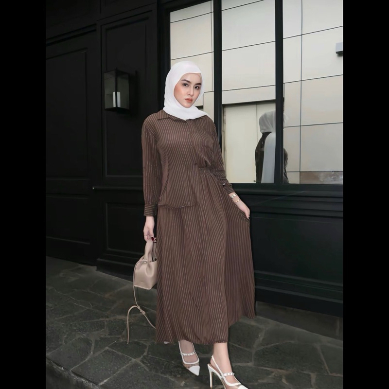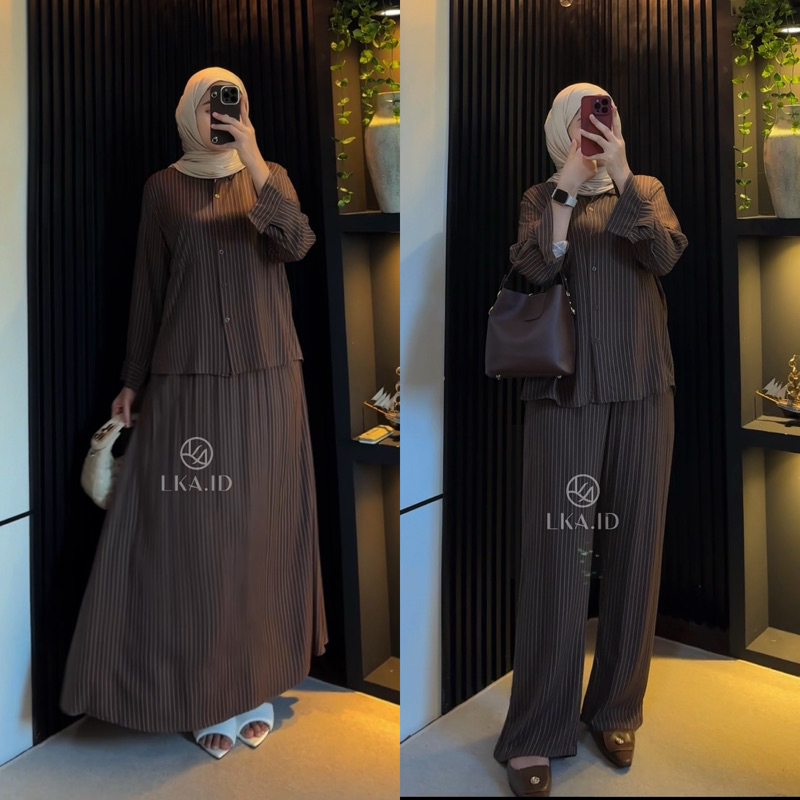 Clarissa One Set Rok Dan Celana Kulot Wanita Semi Cutbray Rayon Motif Premium Kekinian Lka.id