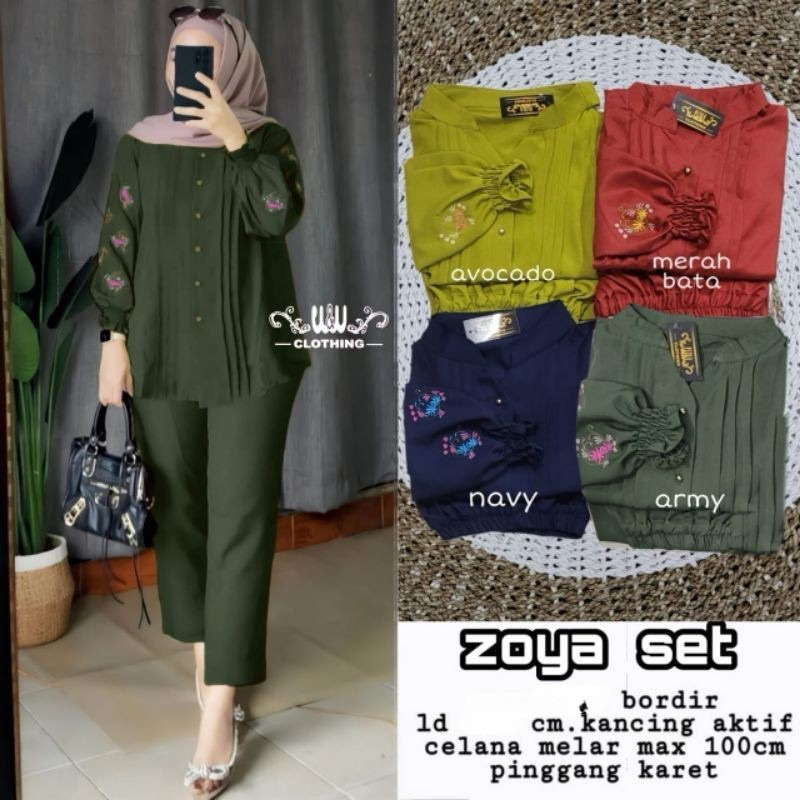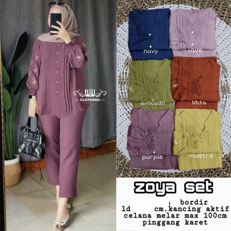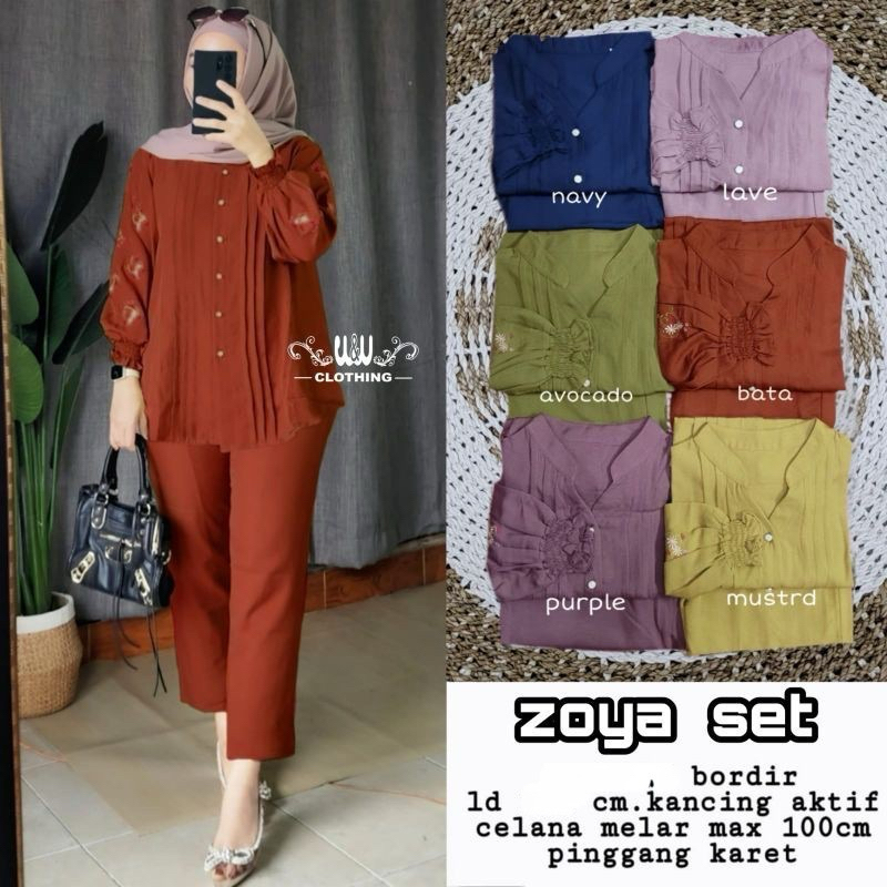 𝐏𝐆𝐌𝐓 • Setelan Zoya LD 110cm LD 130cm Set Bordir Bahan Crinkle Airflow Kancing Aktif
