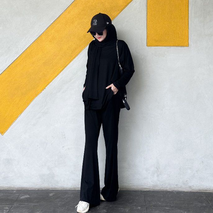 Prissa Set One Set Kaos Celana Hijab Wanita Premium Pinggang Karet Oversize