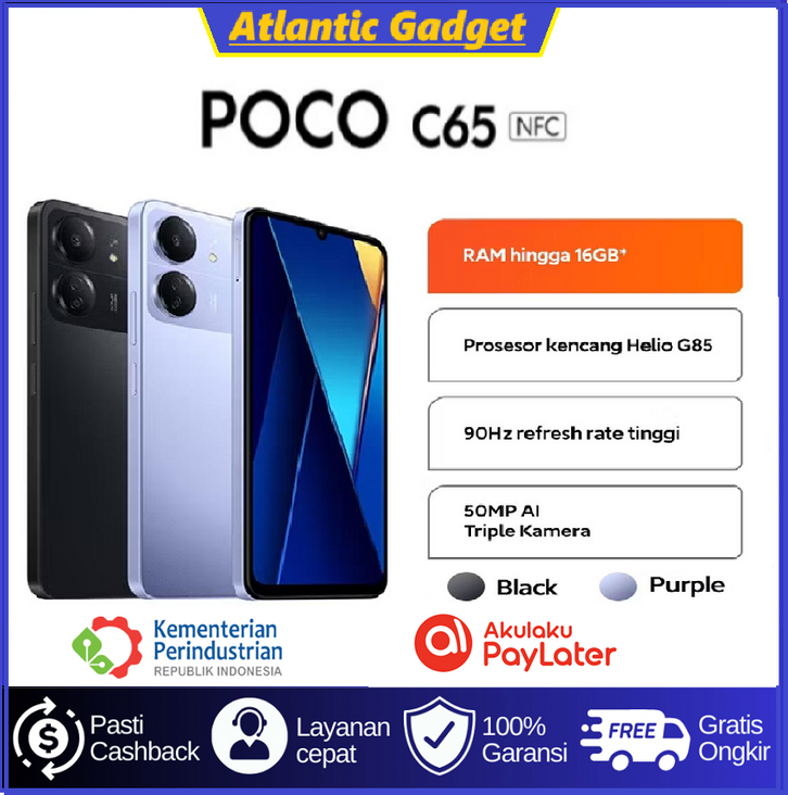 POCO C65 RAM 6/128GB & 8/256GB Garansi Resmi | MediaTek Helio G85 | 50MP Triple Kamera | Baterai 5000mAh 18W | NFC