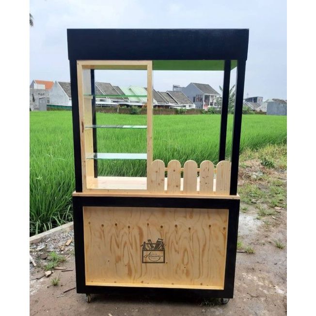 gerobak jualan booth kekinian kayu jati Belanda booth minimalis modern