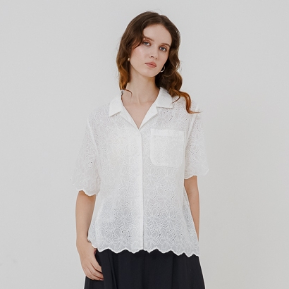 This Is April Atasan Kemeja Wanita Lengan Pendek Crochet Sarah Top White dan Black Original Best Seller Official Store