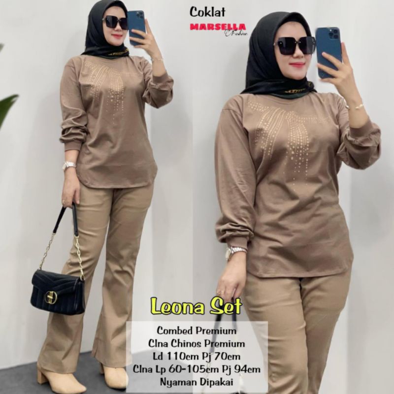 Leoan Set Ori / Setelan Banu Remaja Wanita / Set Kaos Dan Celana Chinos Wanita / Set Baju Wanita Terbaru