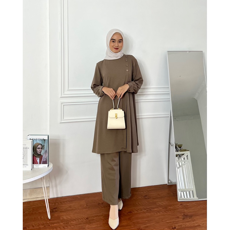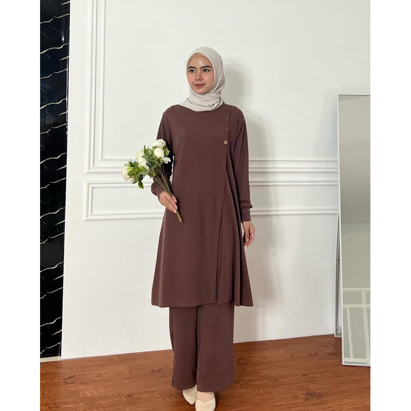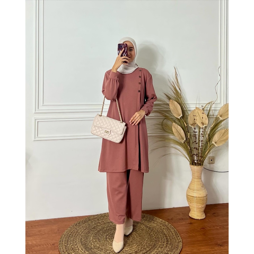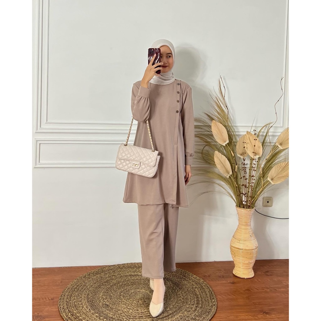 Dafinty - Khalisa Set Tunik Celana Bahan Premium Knit Setelan Wanita Muslimah Terbaru Kekinian
