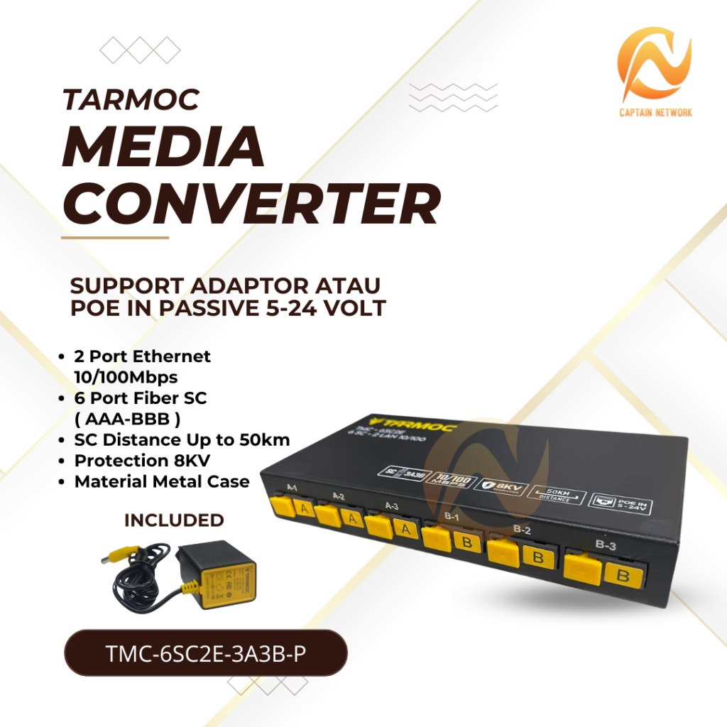 Tarmoc TMC-6SC2E-3A3B-P Media Converter Switch 6SC 2LAN / 6 SC 2 LAN 10/100Mbps POE IN 5-24 Volt 6FO 2LAN / 6 FO 2 LAN