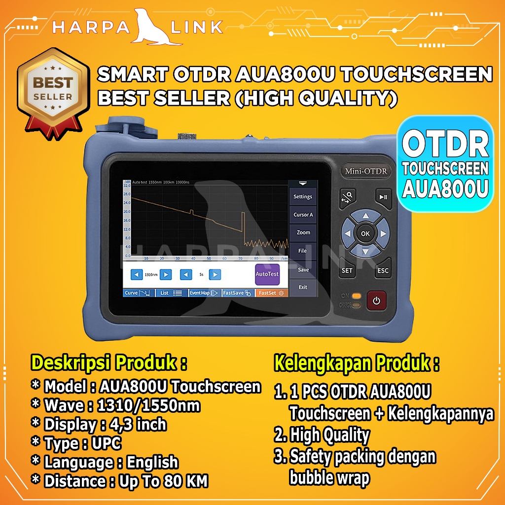 OTDR Mini AUA800U Smart OTDR 1310/1550nm SCUPC 80KM Optical Fiber Tester 100 PERSEN ORI Mini OTDR Termurah Terlengkap Original