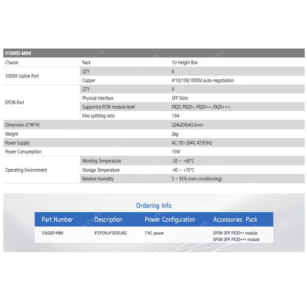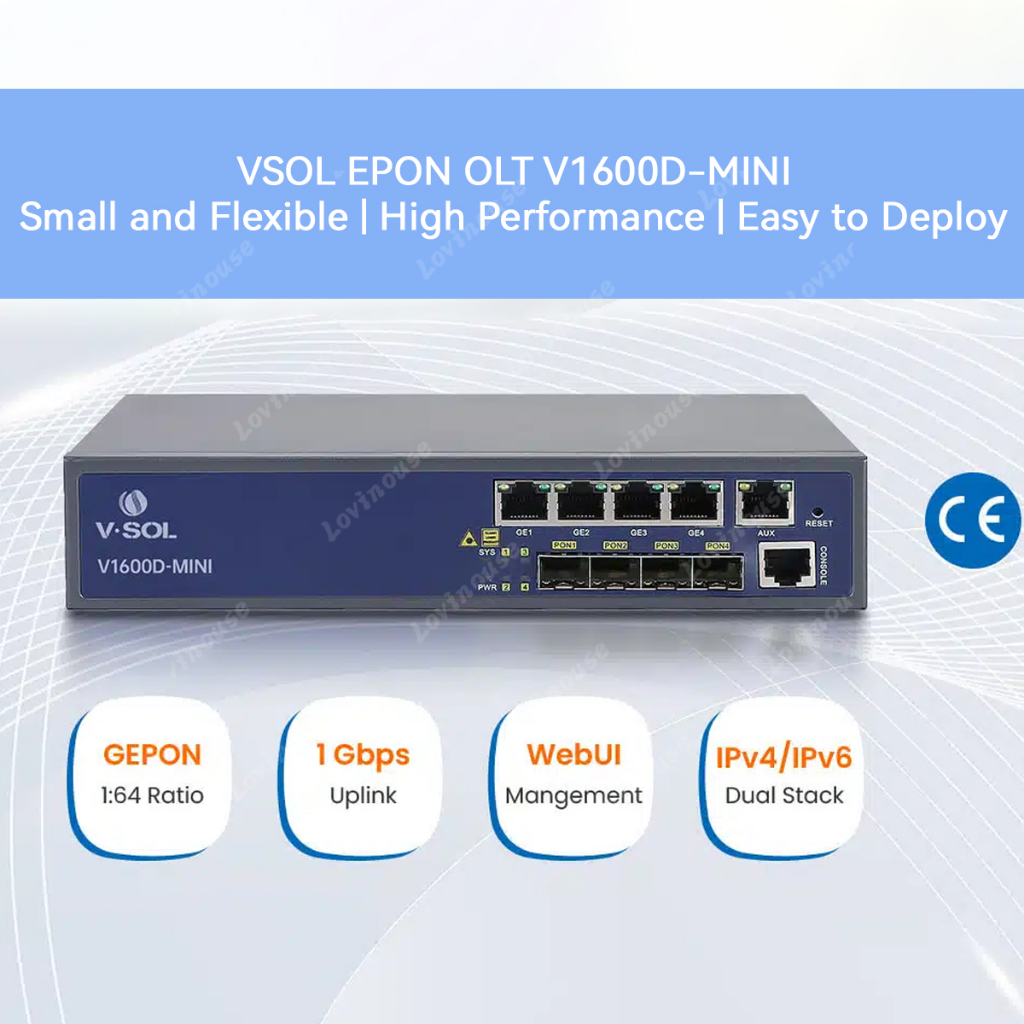 VSOL V1600D Mini 4 Port EPON OLT L2 Support 256 User ONU UPLINK 4GE Single AC Power NO SFP