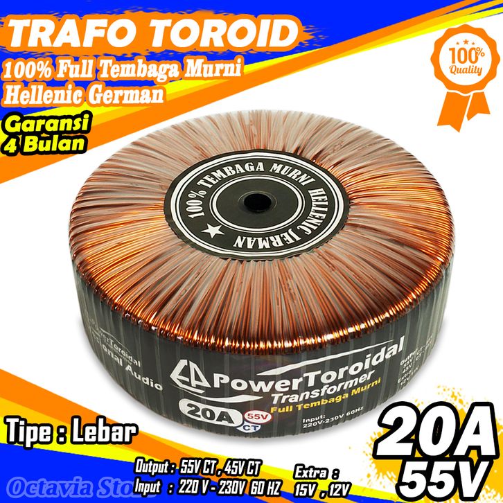 Trafo Toroid 20A CT 55V 45V MURNI Full Tembaga Murni Helenic Jerman Tipe LEBAR PROMO