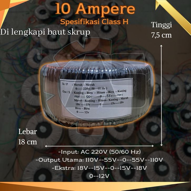 TRAFO TOROID DONAT kelas H 10A CT 110V-55V murni DISKON