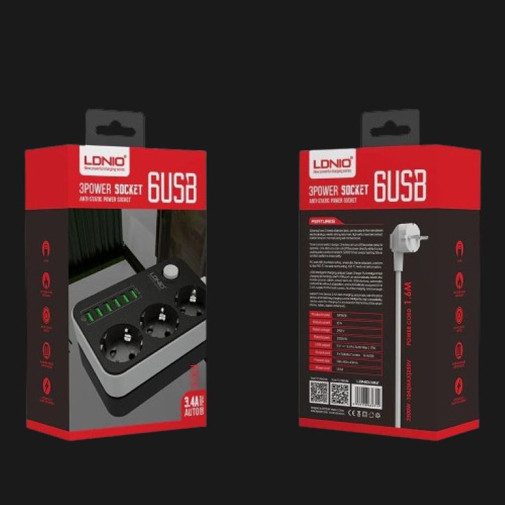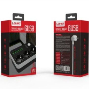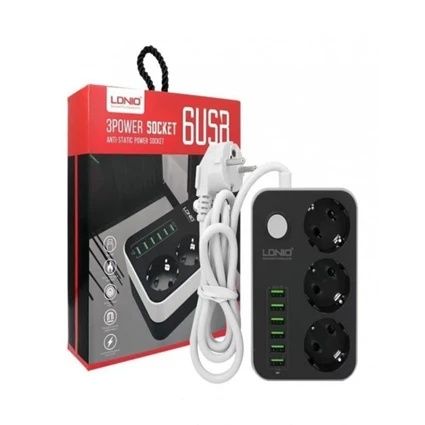 Original LDNIO SE3631 Stop Kontak 3 Socket + 6 USB 3,4A Fast charging DISKON