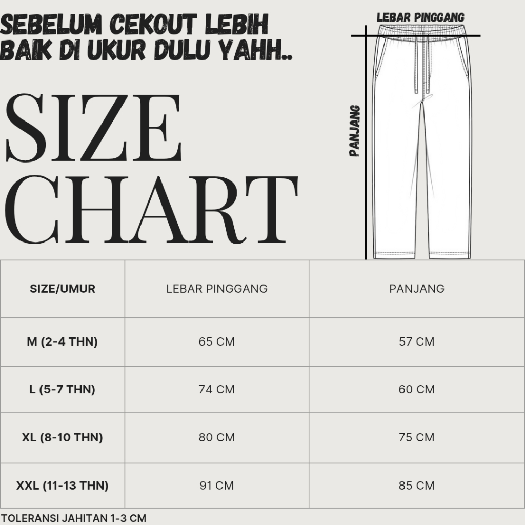 Celana Skena Anak Laki-laki Perempuan Unisex Baggy Sweatpants Korean style untuk Usia 2-13 Tahun - Celana Anak Panjang Banyak Pilihan Gambar
