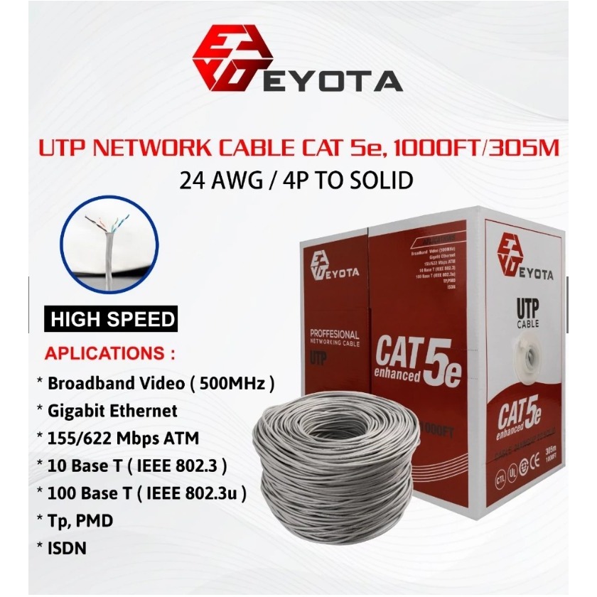 KABEL LAN UTP / FTP CAT5E 300 METER EYOTA SUPPORT POE KOMPUTER PC LAPTOP DESKTOP CCTV WIFI