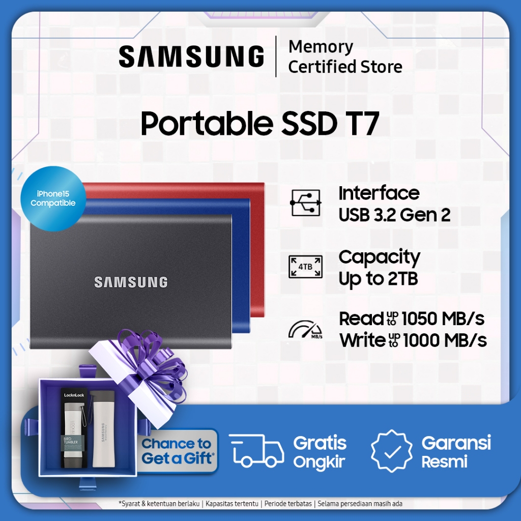 Samsung Portable SSD T7 USB 3.2 Gen 2 - SSD Eksternal - 1TB / 2TB / 4TB