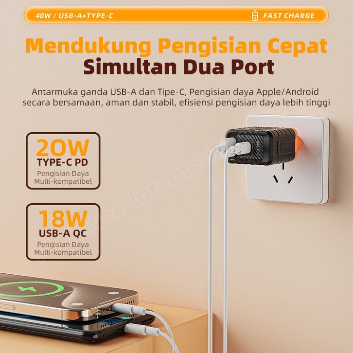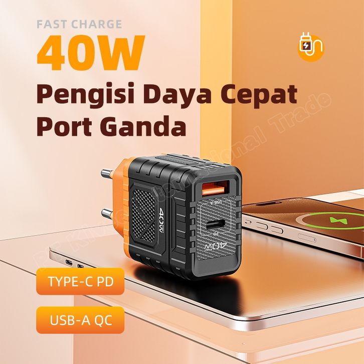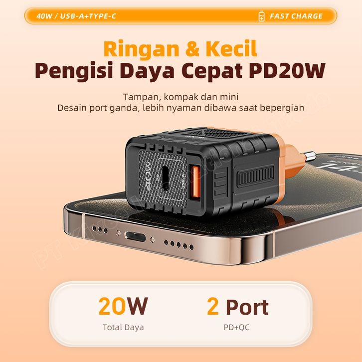 KIVEE Charger Type C Fast Charging PD 20W+QC 3.0 Dual output 40W With Kabel Data 2-in-2 Original Set