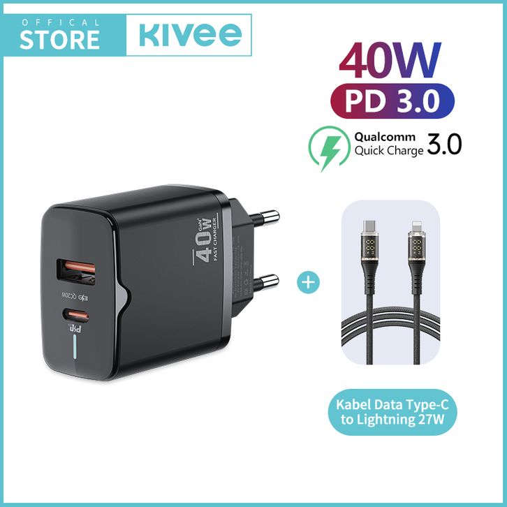 (HOT) KIVEE Charger iphone Fast Charging PD 20W Kabel data Type C & USB 42.5W For IOS Android