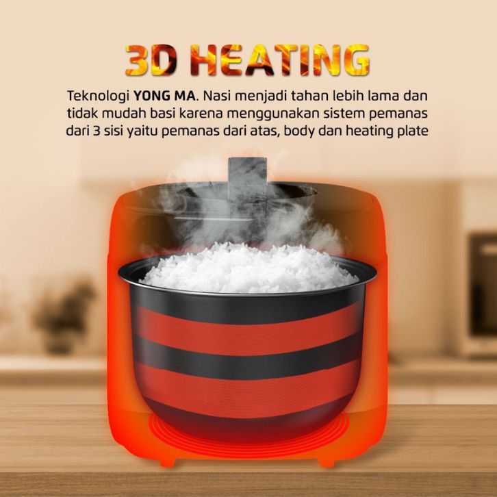 YONG MA Rice Cooker SMC-8073 G/R/S Magicom Penanak Nasi 2 L Premium Black Resmi