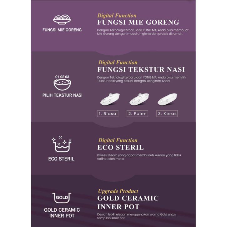 YONG MA Rice Cooker Dital SMC-8027 G/V/R Magicom Penanak Nasi 2 L Resmi