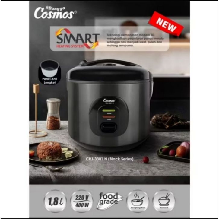 Magic Com/Rice Cooker/Penanak Nasi COSMOS HITAM CRJ3301NB 1.8Liter