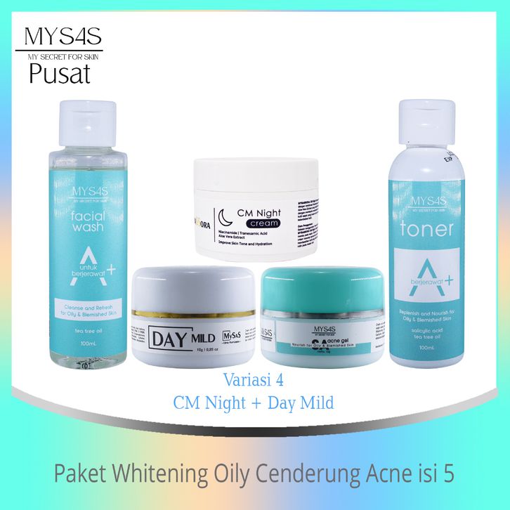 MySAS Skincare Paket Whitening Oily Cendrung Acne isi 5