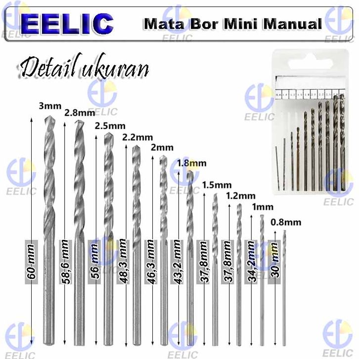 EELIC MAB-MS3 MATA BOR MINI SET ISI 1 PCS UKURAN 3-2.-2.5--2.-1.-1.5-1.2-1.- MATA BOR MANUAL