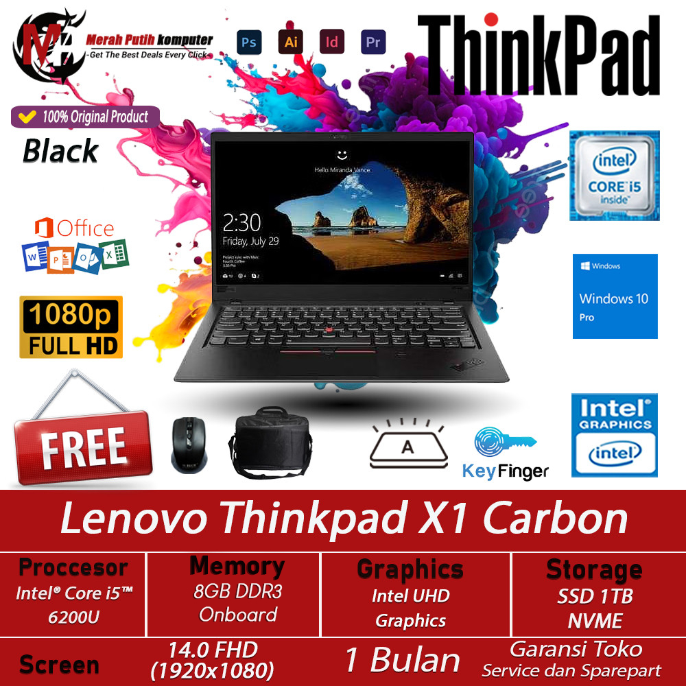 Laptop Kantor Lenovo Thinkpad X1 Carbon Intel i5 Ram 16GB 1TB Ssd FHD IPS Windows11