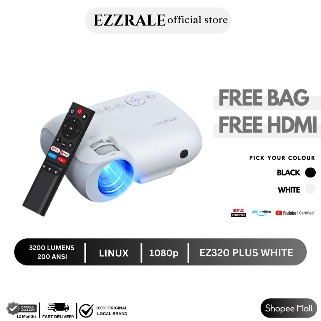 EZZRALE EZ320+ (Plus) 3200 Lumens ( 200 ANSI ) Smart Projector LINUX Netflix & Dolby certified