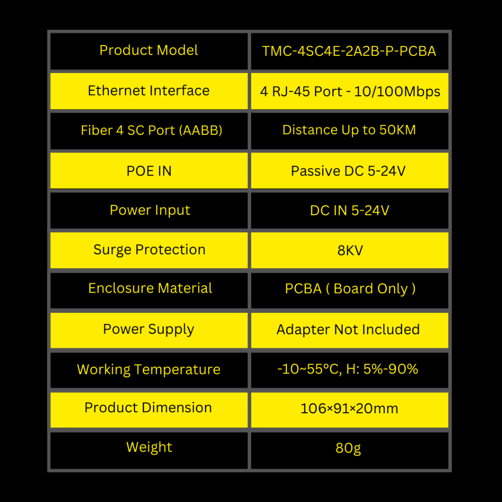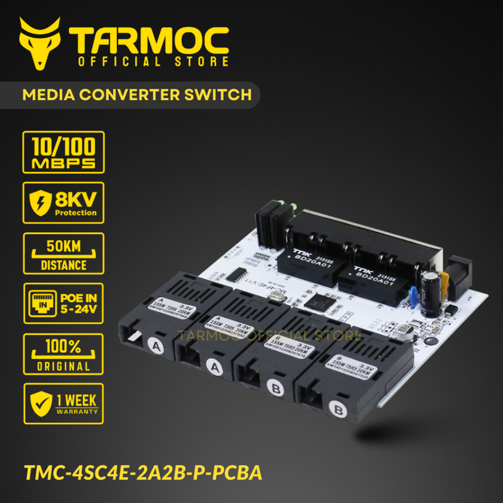 Tarmoc TMC-4SC4E-2A2B-P-PCBA Media Converter Switch 4 FO 4 LAN 10/100Mbps POE IN 5-24V ( Board )