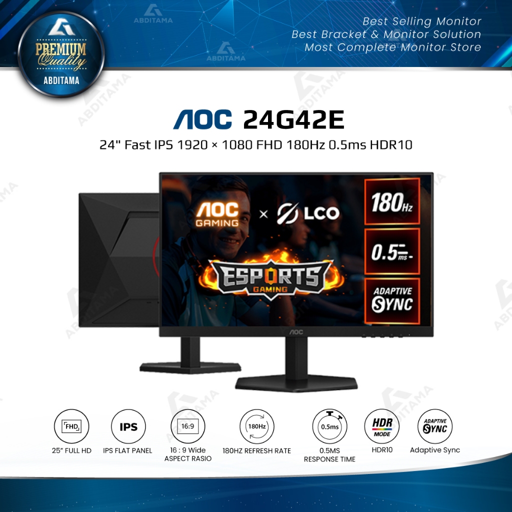 Monitor LED AOC 24G42E 24" Fast IPS 1920 × 1080 FHD 180Hz 0.5ms Adaptive-Sync Technology HDR10