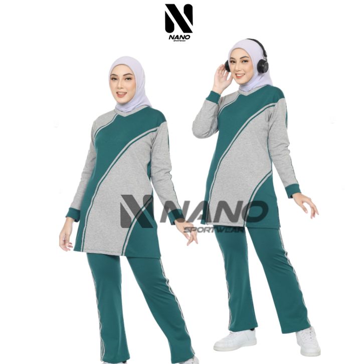 Promo Nano Sportswear Baju Senam Muslim Wanita / Baju Senam Muslim Das Tunik / Setelan Baju Senam Keren
