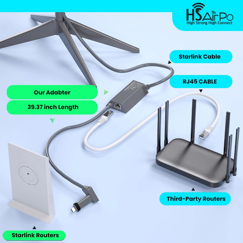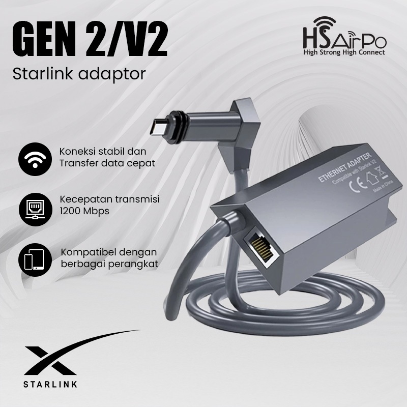 HSAirPo Starlink Adaptor Gen 2/V2 1200 Mbps Ethernet / Adapter Lan RJ45 Starlink Internet Satelit EP-SK0021