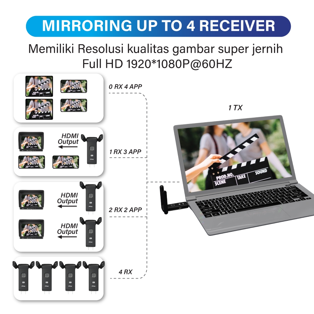 Wireless HDMI Transmitter Receiver Audio Video Display Stick Laptop Smartphone 60 Meter PX WTR-300A