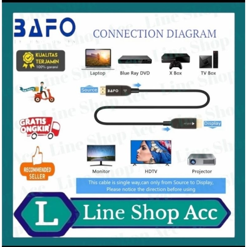 BAFO ORIGINAL Kabel HDMI Fiber Optic / HDMI Active Optical 10 Meter 15 Meter 20 Meter 25 Meter 30 Meter 40 Meter 50 Mete