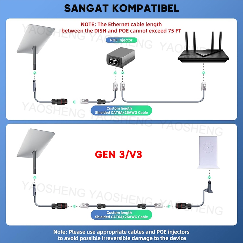 STARLINK GEN3 V3 Adaptor Kabel Satelit Konektor RJ45 Dirancang untuk Gen3 V3
