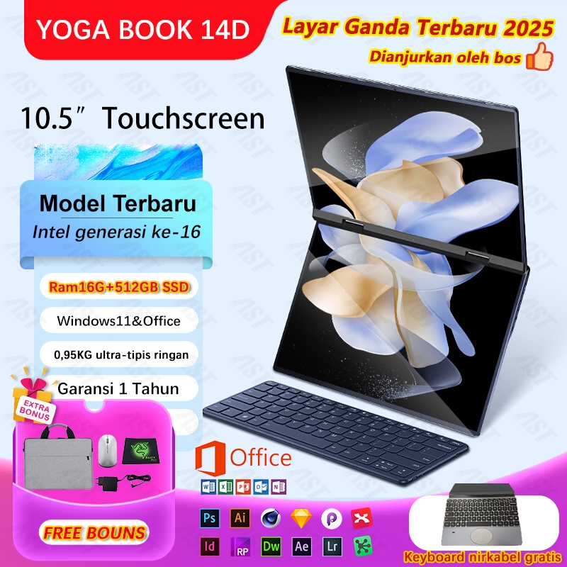 2025 Baru CNAST Laptop Touchscreen 2in1 dual screen YOGA BOOK Intel N100 Ram16+512GB layar sentuh