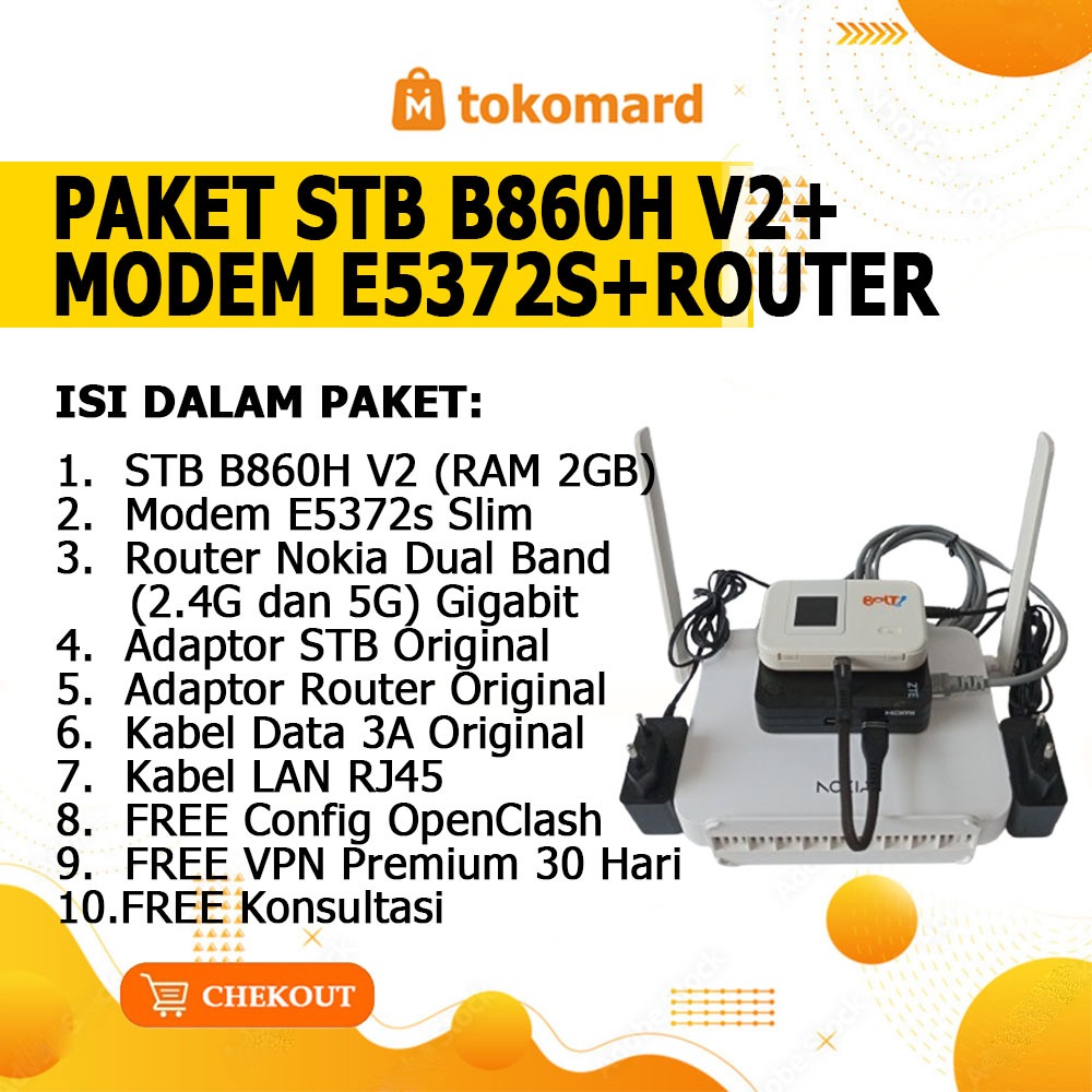 Paket STB OpenWrt Siap Pakai STB B860H V2 Modem E5372s Unlock All Operator 4G Free VPN Premium